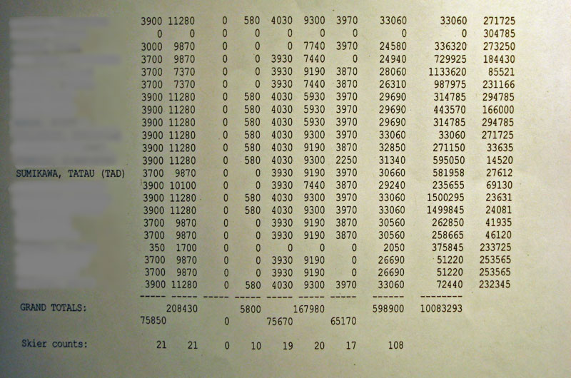 毎日ヘリスキーから帰ってくると、実際に滑られた標高差がロッジの掲示板に貼りだされますので、翌日に滑る距離をある程度お客様ご自身で調整していただくこともできます。